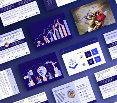 Création de différents PDF de présentation, illustrations, stickers muraux et supports évenementiels
