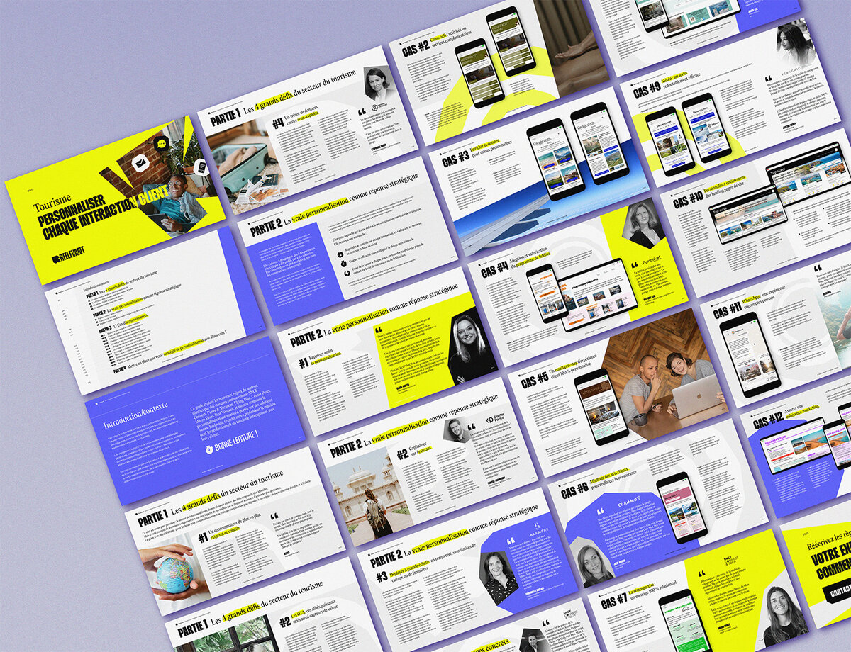 Création d'un e-book de 30 pages sur l'expérience client dans le tourisme sur Figma, avec les composants et la charte graphique de la marque